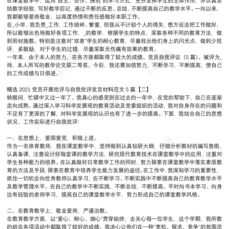 精選2021黨員關于批評與自我批評發言稿通用5篇包含