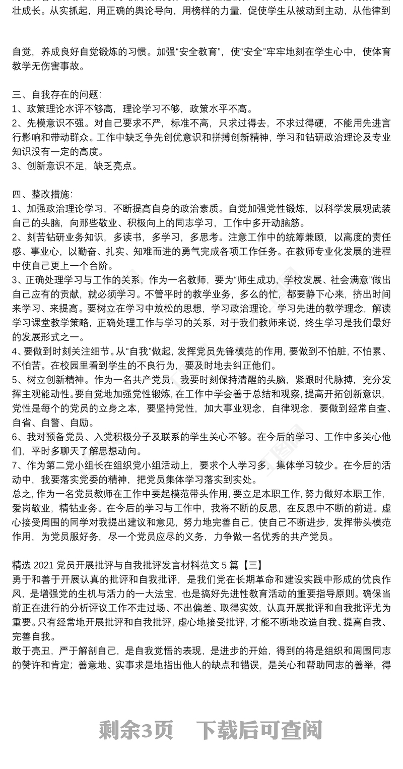 2021黨員干部批評與自我批評發言稿3篇包含