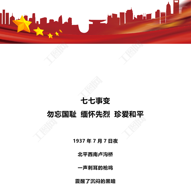 工圖網(wǎng)提供紀(jì)念七七事變88周年P(guān)PT勿忘國(guó)恥緬懷先烈珍愛和平黨課課件(講稿)供會(huì)員免費(fèi)下載。更多精彩黨課PPT素材,盡在工圖網(wǎng)。
