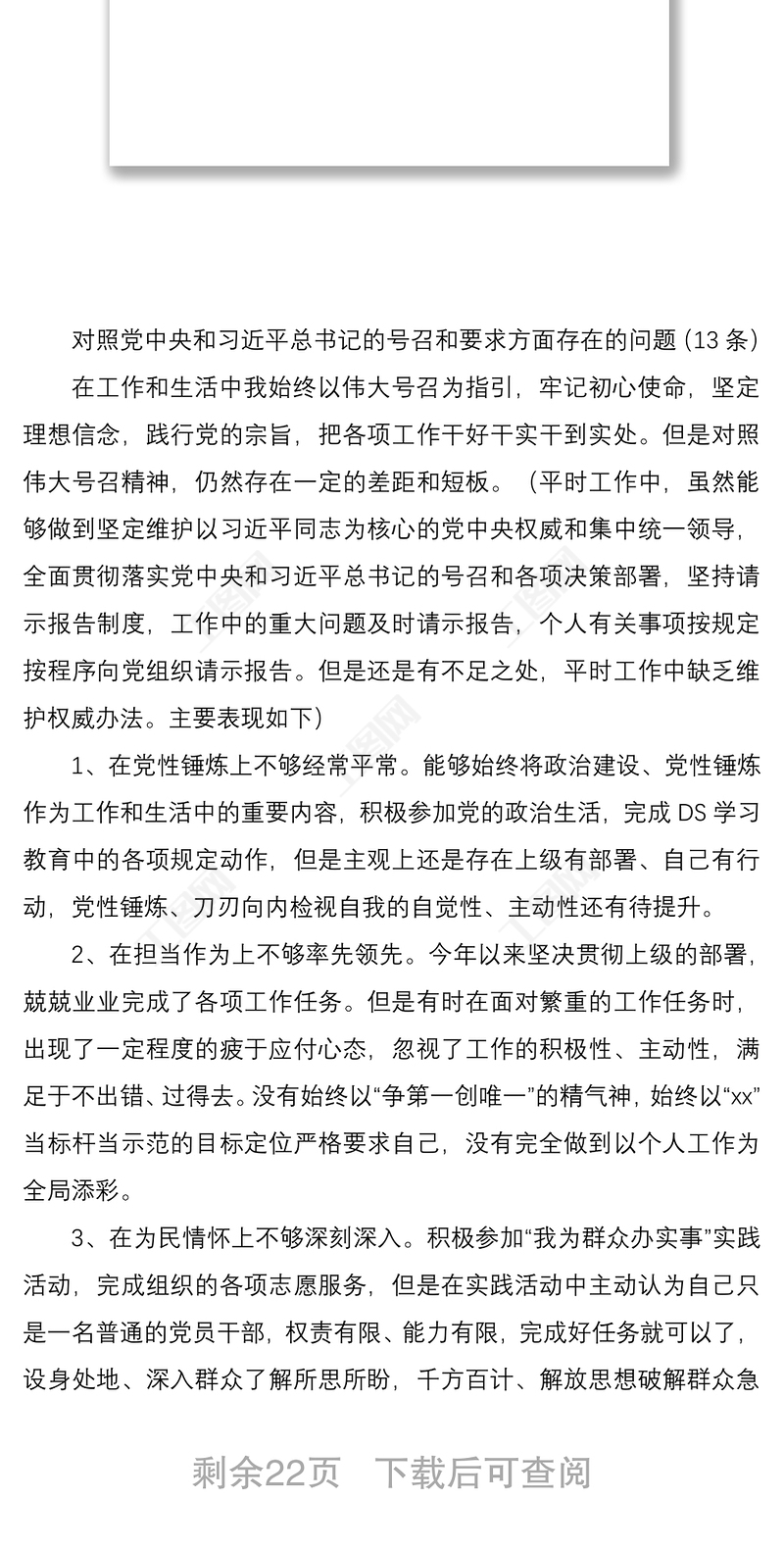 首頁 > WORD文檔 > 對照檢查 > DS學習教育組織生活會對照檢查問題清單、原因和措施(89條).DOCX 【圖片、文字、動畫均可編輯】