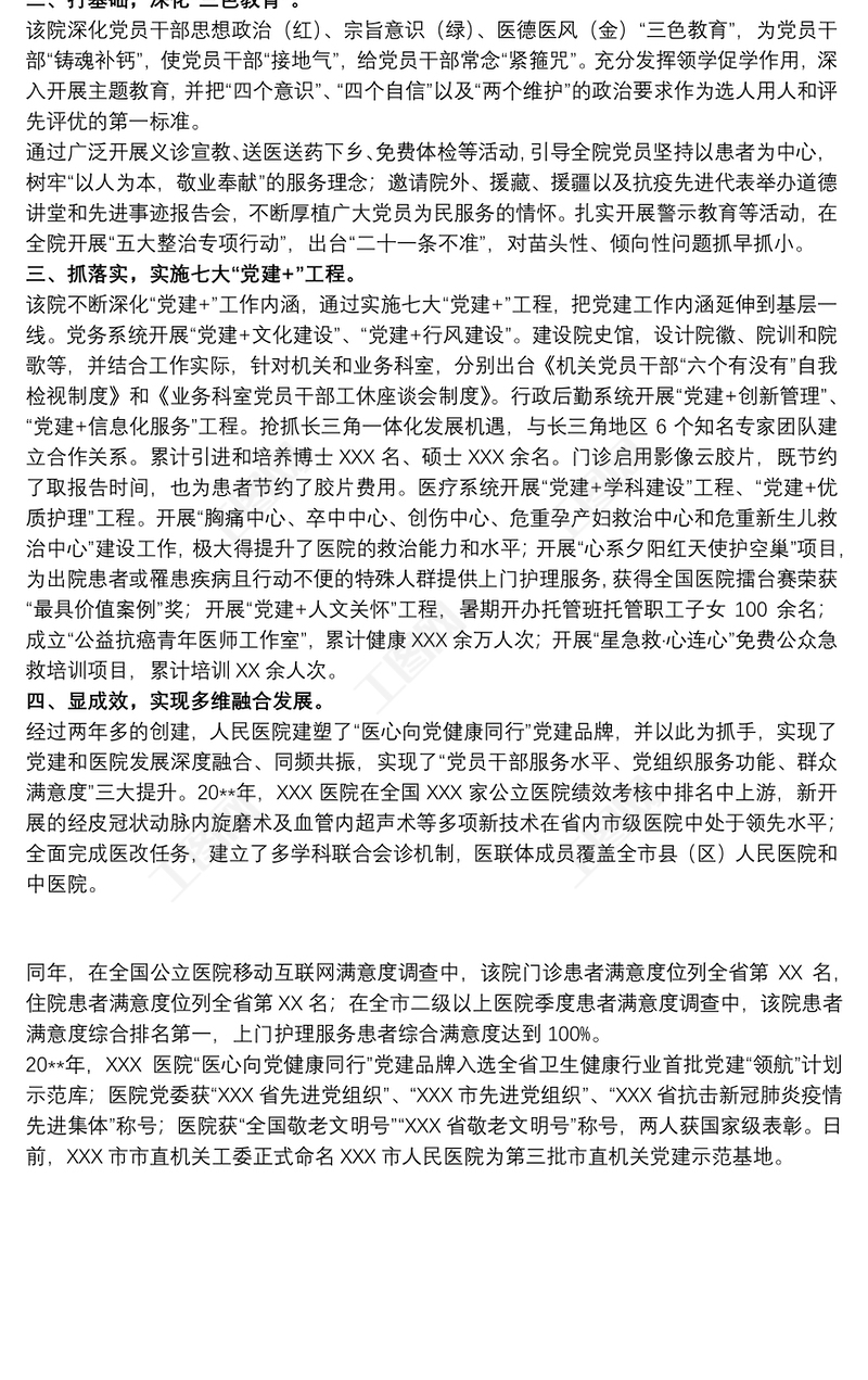 2021關(guān)于醫(yī)院打造黨建品牌、引領(lǐng)高質(zhì)量發(fā)展的工作方案范文