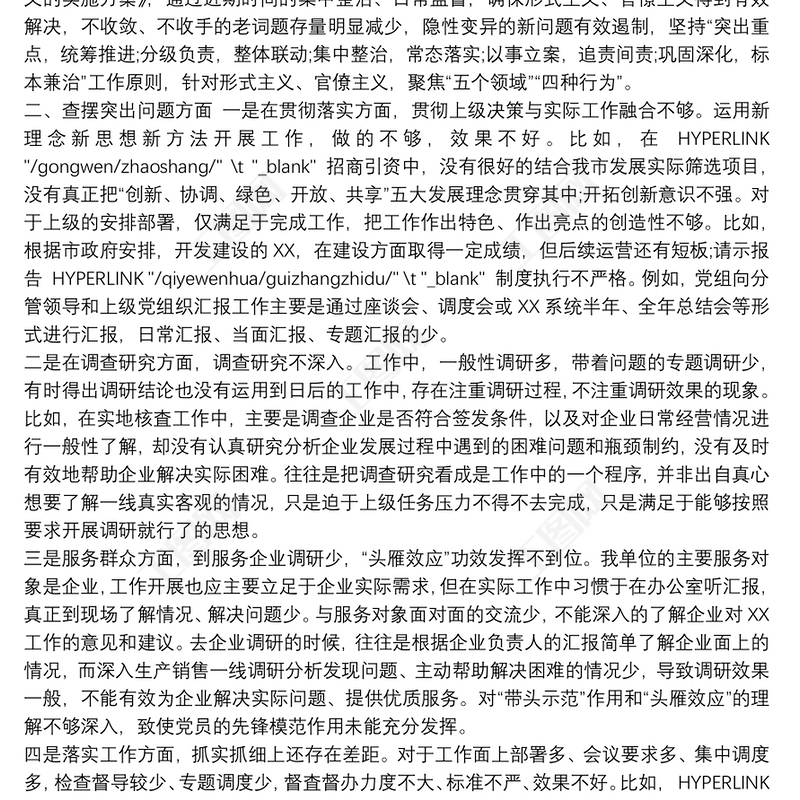 20xx年政府機關集中整治形式主義官僚主義自查自糾報告
