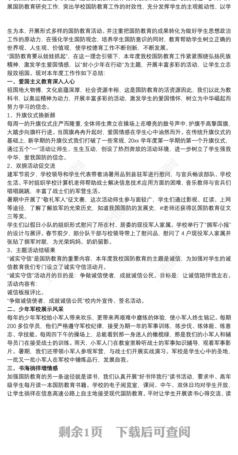 工圖網提供小學國防教育工作總結供會員免費下載。更多精彩黨課PPT素材,盡在工圖網。