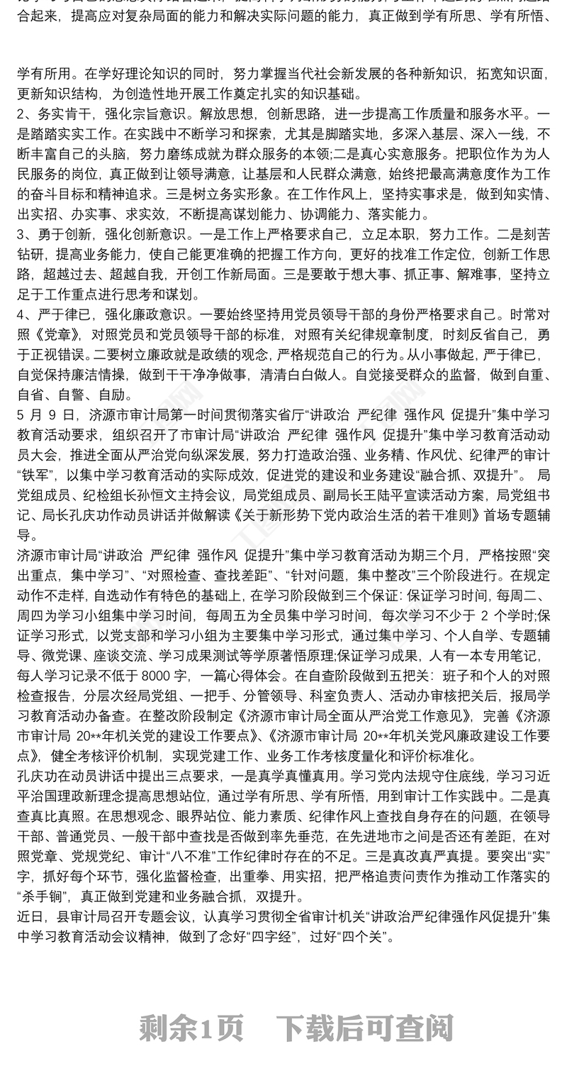 “講政治、嚴紀律、強作風、促提升”-學習教育活動對照檢查材料包含