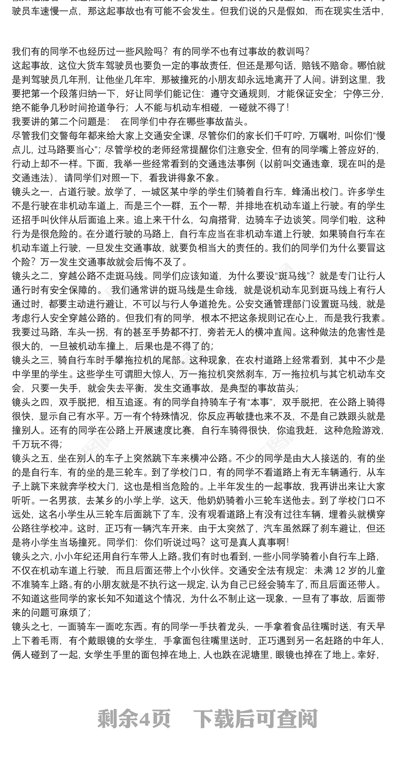 小學安全教育講話稿包含