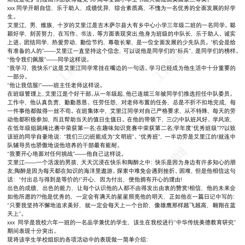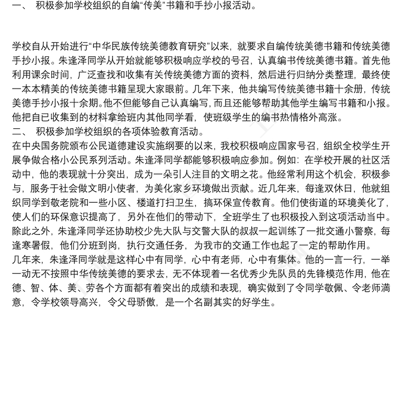 新時代好少年事跡材料 新時代好少年先進個人事跡材料包含