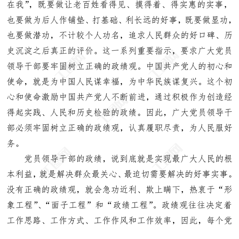 黨員領(lǐng)導(dǎo)干部要牢固樹立正確的政績(jī)觀之黨政公文