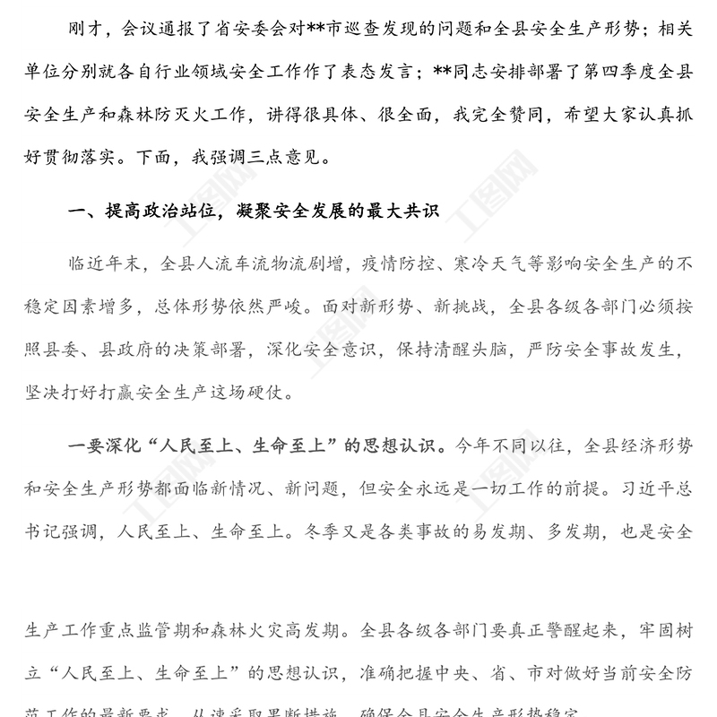 工圖網(wǎng)提供縣委書記在全縣2021年第四季度安委會暨森林防滅火專項整治工作領(lǐng)導小組全體成員會議上的講話供會員免費下載。更多精彩黨課PPT素材,盡在工圖網(wǎng)。