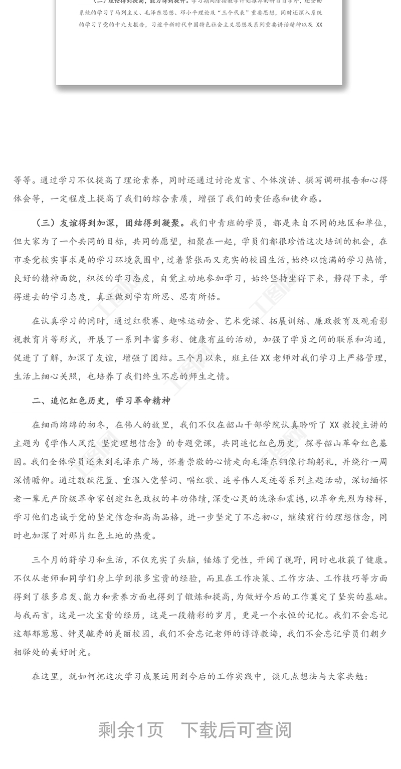 2020年中青年干部培訓班學員代表結業發言(二篇)包含