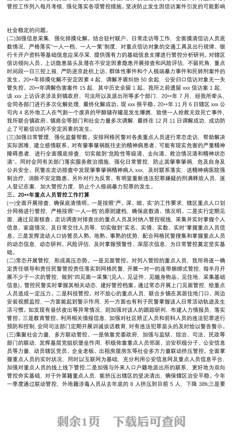 公安派出所重點人員管控總結材料 其他工作總結范文3篇 Array