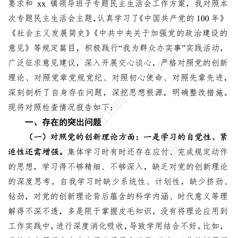 工圖網提供鄉鎮黨委書記、鎮長黨史學習教育專題民主生活會對照檢查材料供會員免費下載。更多精彩黨課PPT素材,盡在工圖網。