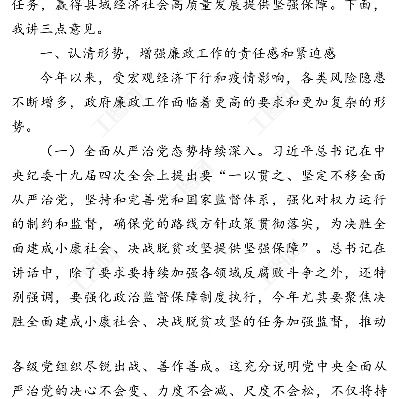 堅(jiān)守底線思維 強(qiáng)化依法行政 以廉勤敢為作風(fēng)保障經(jīng)濟(jì)社會高質(zhì)量發(fā)展——在縣政府2020年廉政工作會議上的講話,廉政工作會議 Array
