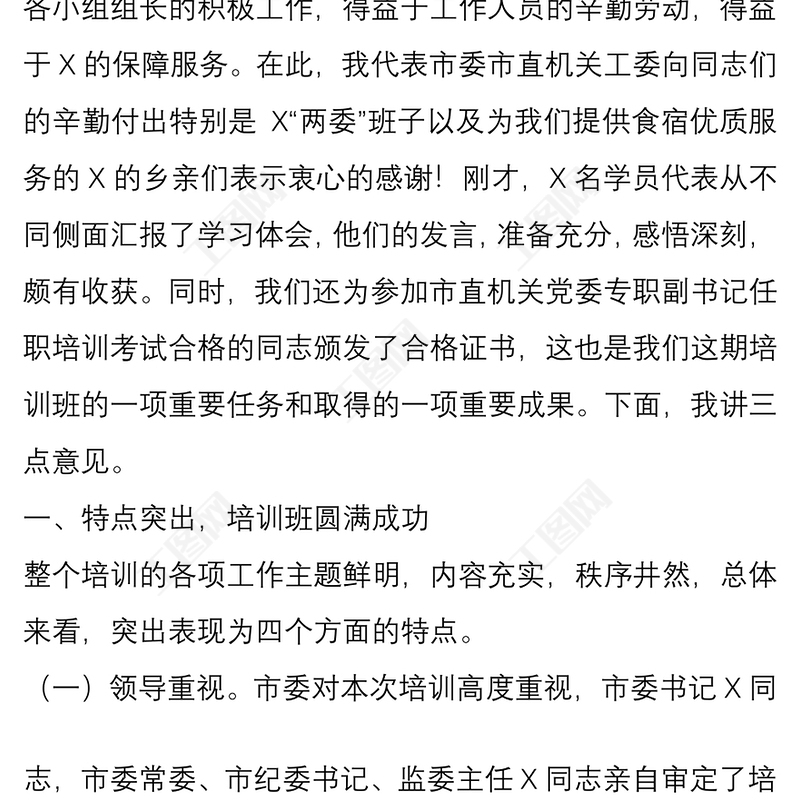 工圖網提供2021市直機關黨務干部紀檢干部培訓班結業典禮上的講話供會員免費下載。更多精彩黨課PPT素材,盡在工圖網。