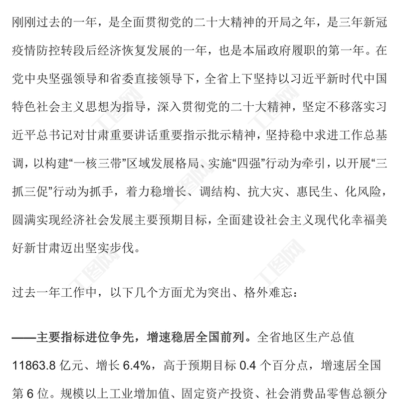 工圖網提供2024年甘肅省政府工作報告PPT大氣簡潔黨政機關工作匯報模板(講稿)供會員免費下載。更多精彩黨課PPT素材,盡在工圖網。