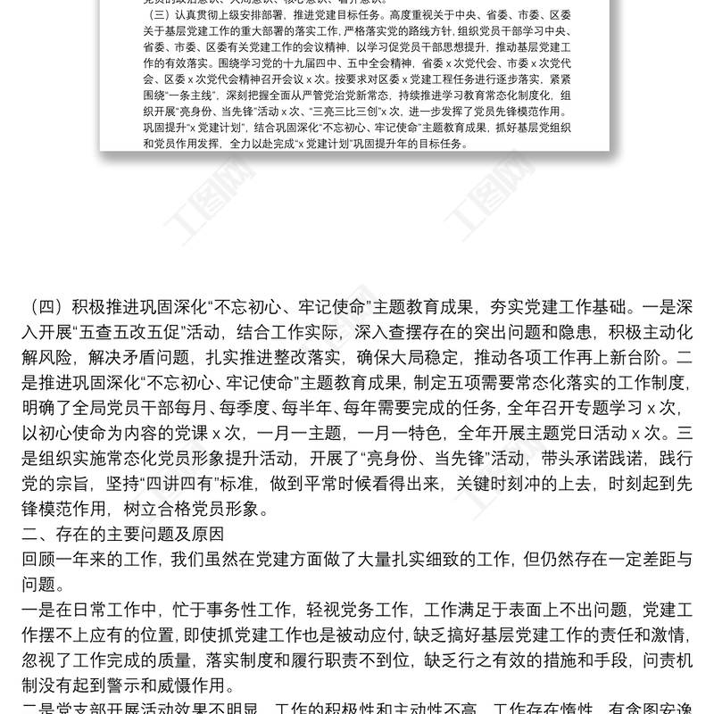 2019年黨組織書記抓基層黨建述職點評基層黨建工作述職報告包含