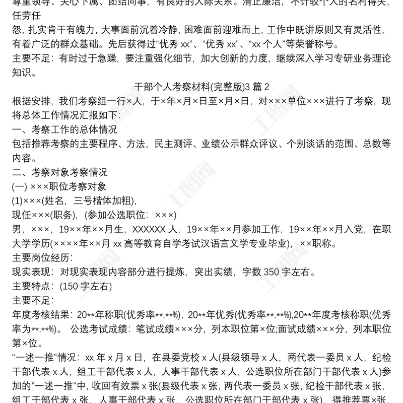 工圖網(wǎng)提供干部個(gè)人考察材料(完整版)3篇供會(huì)員免費(fèi)下載。更多精彩黨課PPT素材,盡在工圖網(wǎng)。