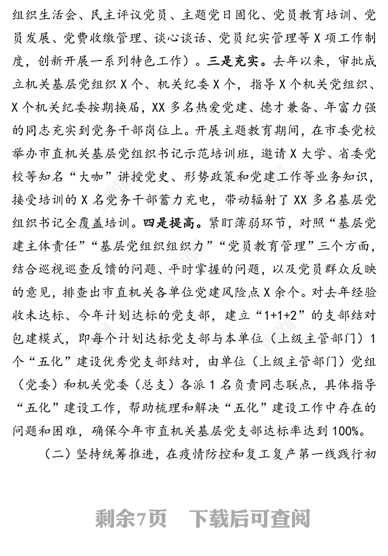2021年上半年基層黨建工作匯報及下半年重點工作安排包含