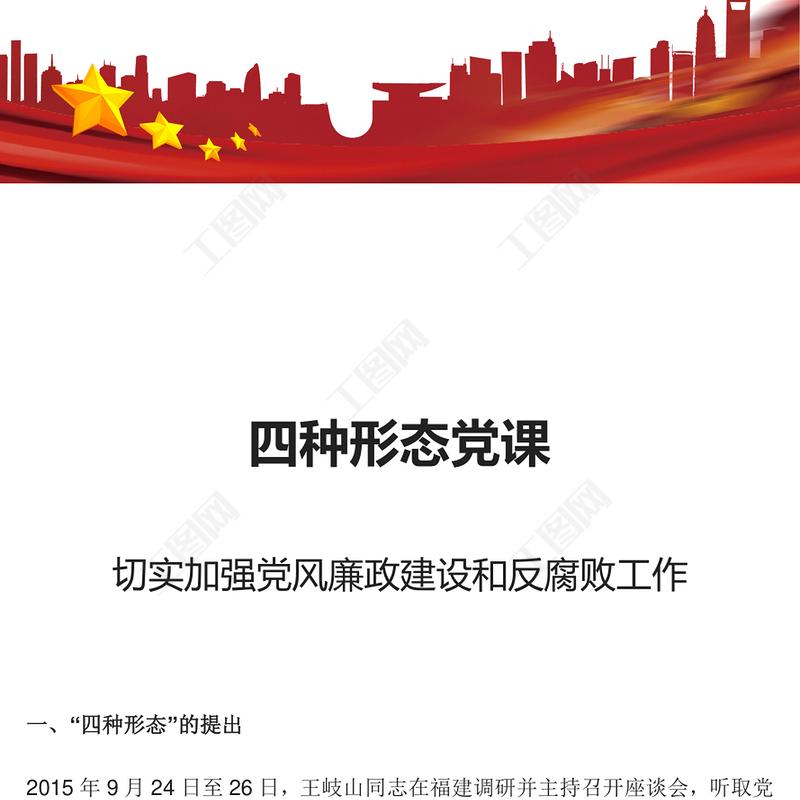 工圖網提供四種形態 切實加強黨風廉政建設和反腐敗工作專題黨課演講稿供會員免費下載。更多精彩黨課PPT素材,盡在工圖網。