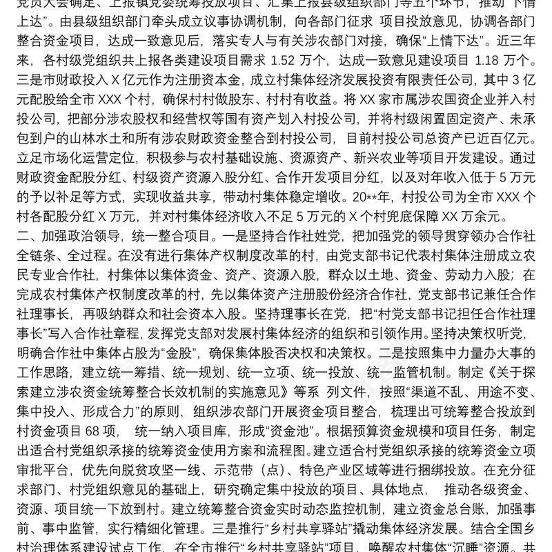 20xx年關于發展壯大村級集體經濟工作進展情況匯報范文