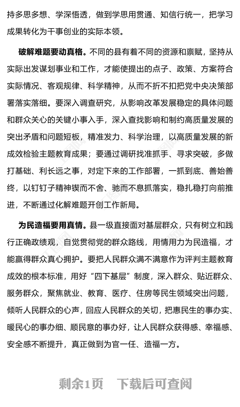 抓好縣一級這個重點PPT樹立和踐行正確政績觀確保主題教育走深走實第二批主題教育黨課(講稿)