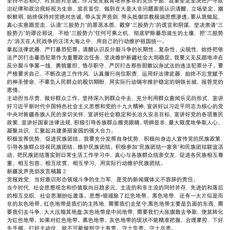 2021最新20xx年新疆發聲亮劍發言稿包含