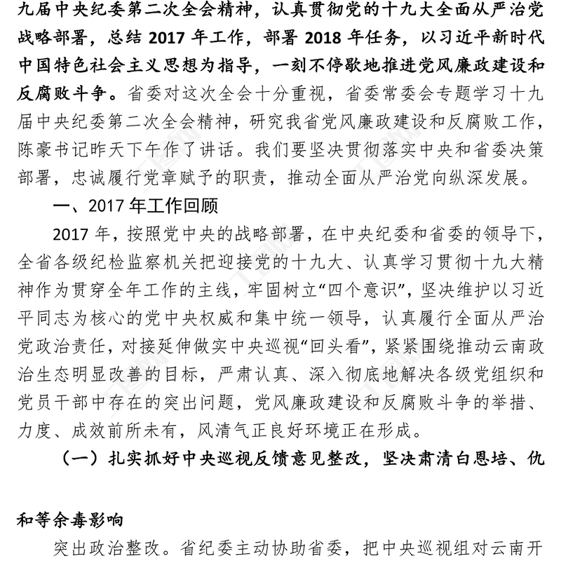 云南省紀委十屆三次全會黨風廉政建設和反腐敗斗爭工作報告