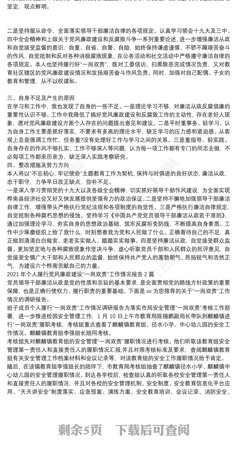 工圖網提供2021年個人履行黨風廉政建設“一崗雙責”工作情況報告3篇供會員免費下載。更多精彩黨課PPT素材,盡在工圖網。