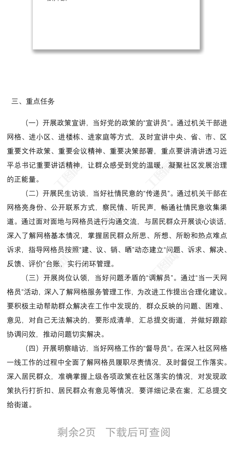 工圖網提供2021xx街道機關干部職工下沉社區網格工作方案供會員免費下載。更多精彩黨課PPT素材,盡在工圖網。