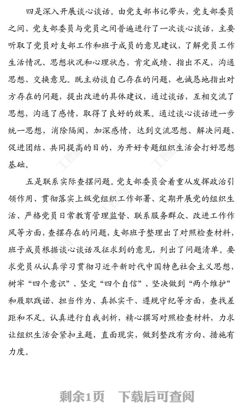 首頁 > WORD文檔 > 組織生活會 > 黨史學習教育專題組織生活會會前準備情況匯報.DOCX 【圖片、文字、動畫均可編輯】