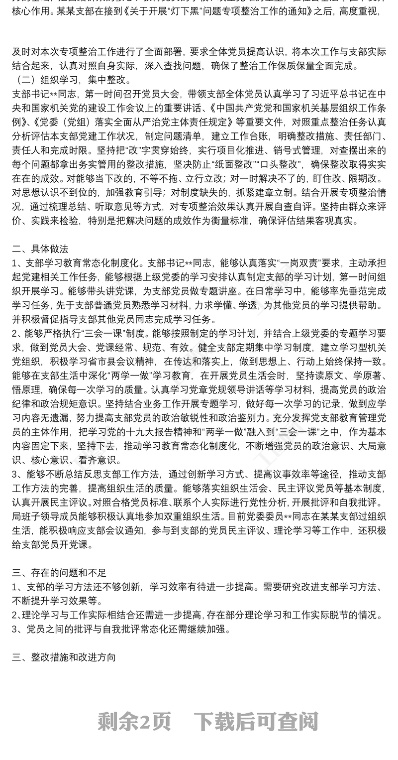 2021年黨支部開展燈下黑問題專項整治工作自查報告