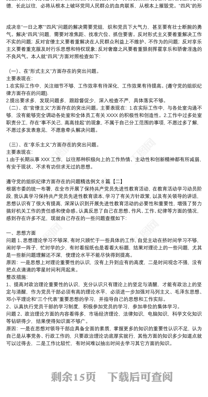 工圖網(wǎng)提供遵守黨的組織紀律方面存在的問題精選例文8篇供會員免費下載。更多精彩黨課PPT素材,盡在工圖網(wǎng)。