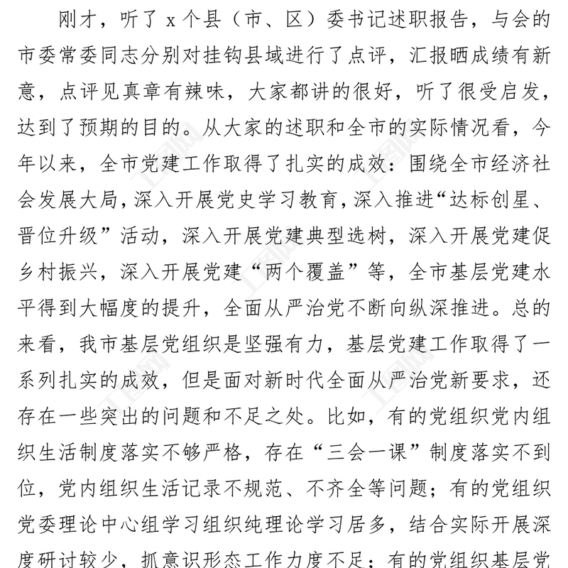 在全市縣(市、區)委書記抓基層黨建工作述職評議會上的講話 Array