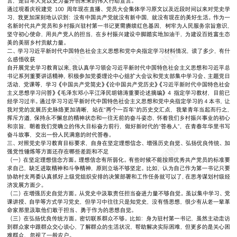 駐村干部在20xx年組織生活會個人對照檢查材料匯報范文 Array