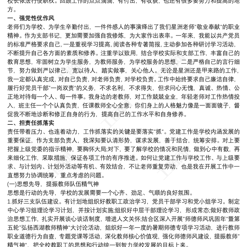 2020學校黨支部書記黨建述職報告包含