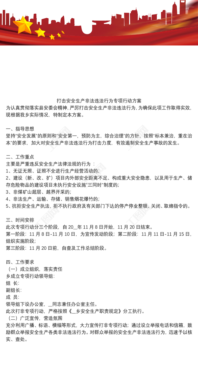 工圖網提供打擊安全生產非法違法行為專項行動方案供會員免費下載。更多精彩黨課PPT素材,盡在工圖網。