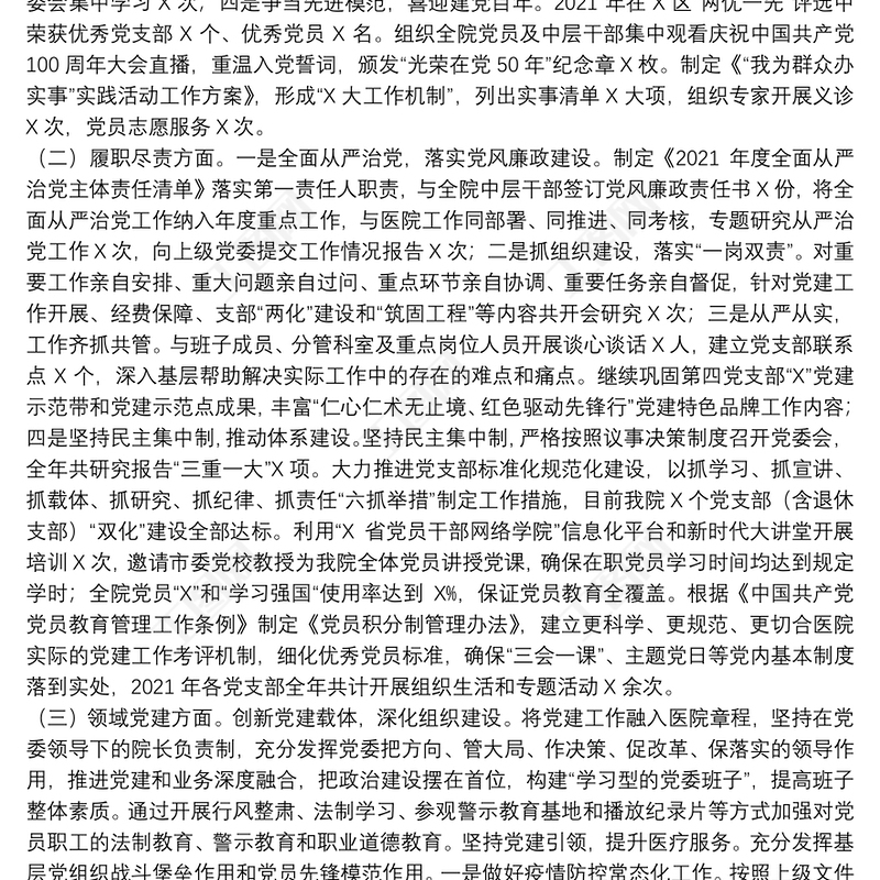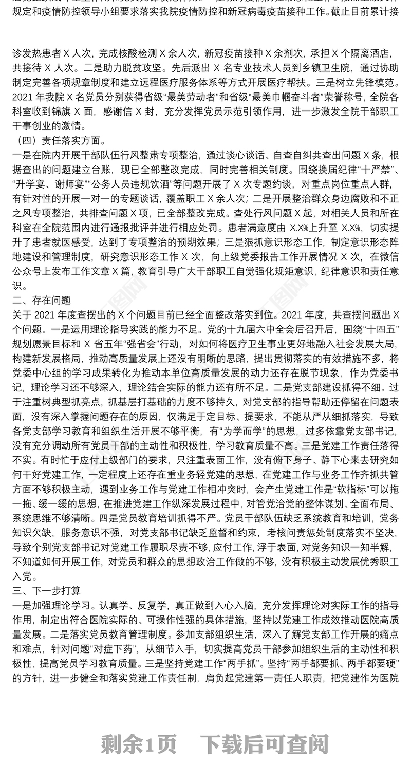 工圖網提供醫院黨委書記2021年抓黨建述職報告供會員免費下載。更多精彩黨課PPT素材,盡在工圖網。