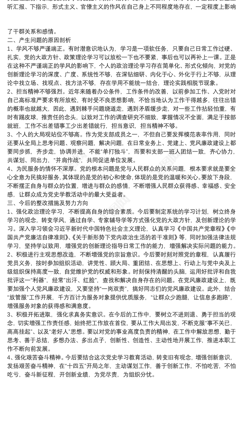 2021黨支部委員在20xx年教育專題組織生活會對照檢查材料范文