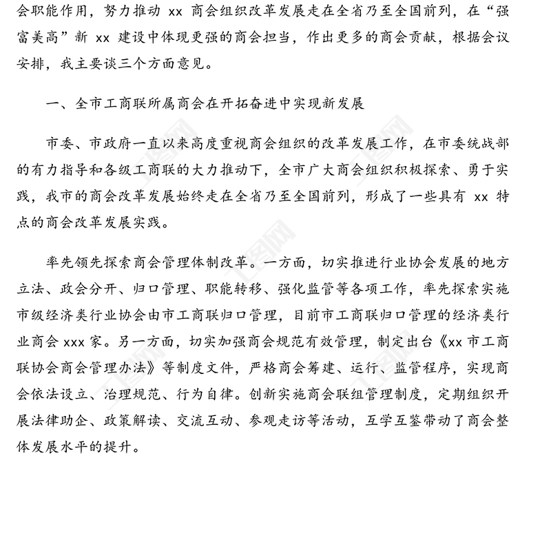 > 領(lǐng)導(dǎo)講話 > 工商聯(lián)黨組書(shū)記在全市工商聯(lián)商會(huì)改革發(fā)展工作會(huì)議上的講話.DOCX 【圖片、文字、動(dòng)畫(huà)均可編輯】