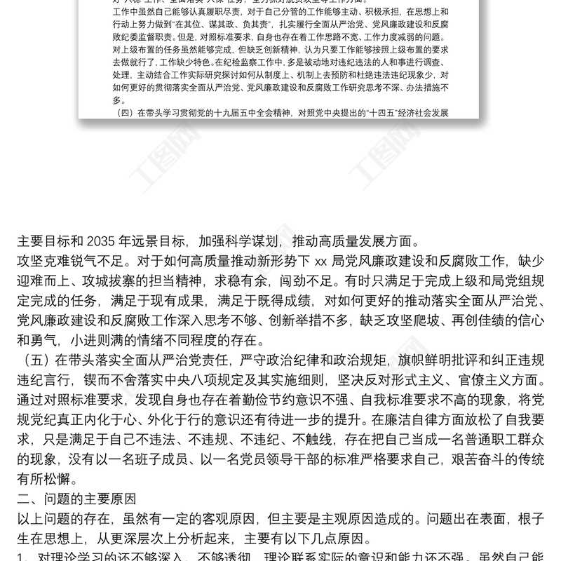 工圖網提供X紀委書記20**年度圍繞“五個方面”民主生活會個人對照檢查材料供會員免費下載。更多精彩黨課PPT素材,盡在工圖網。