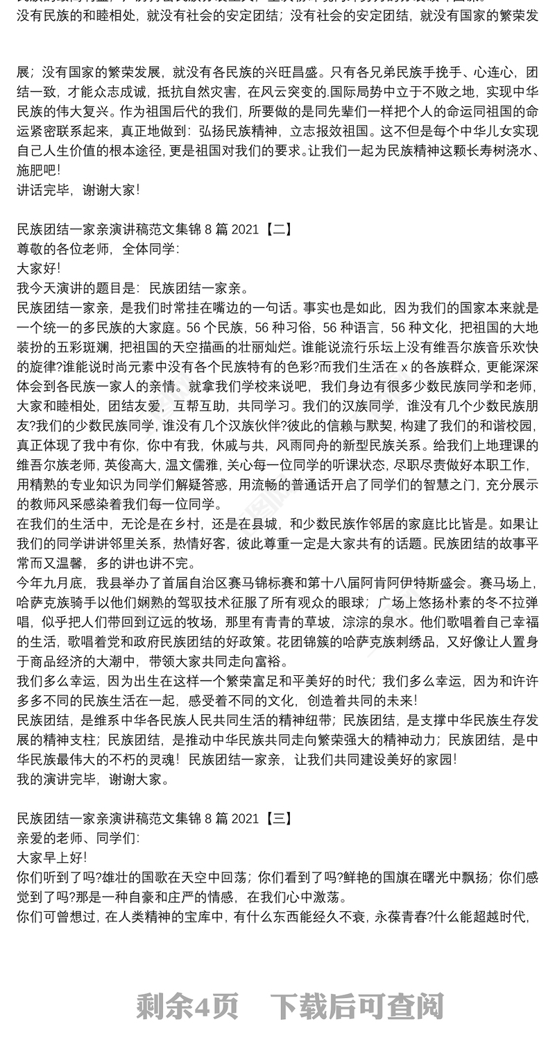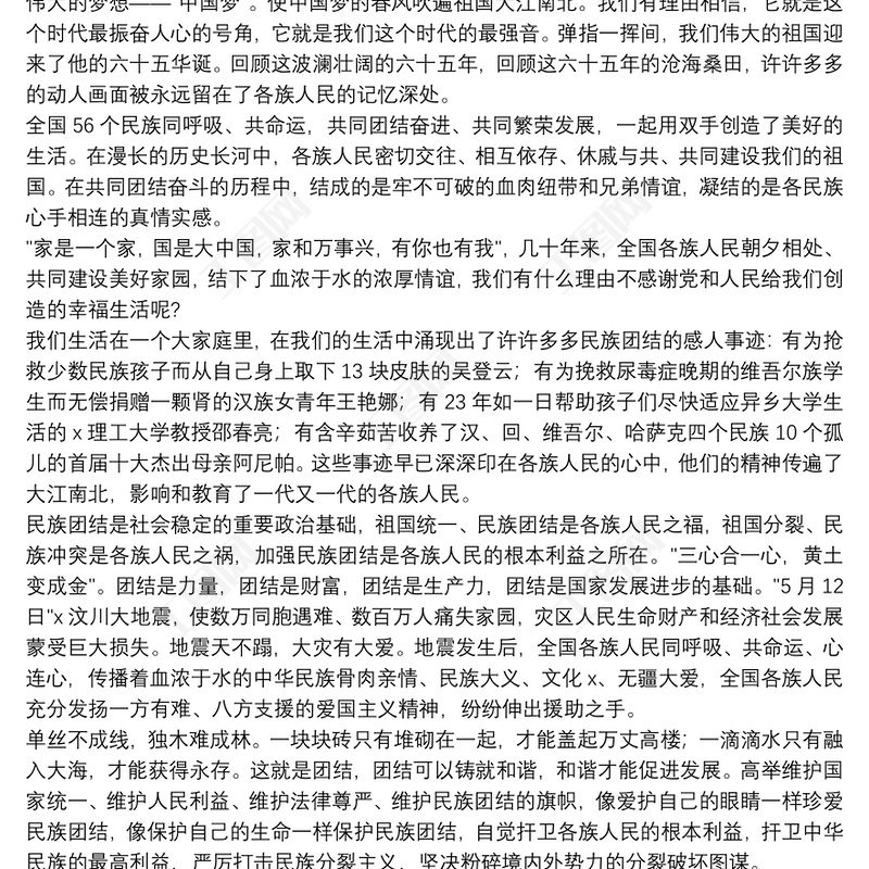 民族團結一家親演講稿范文集錦8篇2021 Array