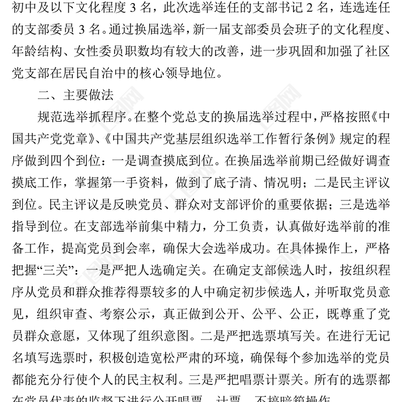 黨組織換屆選舉工作總結(jié),換屆選舉工作總結(jié),公文范例,領(lǐng)導(dǎo)述職報(bào)告,機(jī)關(guān)公文寫作 Array