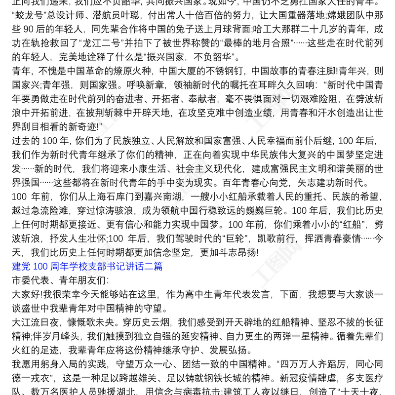 工圖網(wǎng)提供建黨100周年學校支部書記講話三篇供會員免費下載。更多精彩黨課PPT素材,盡在工圖網(wǎng)。