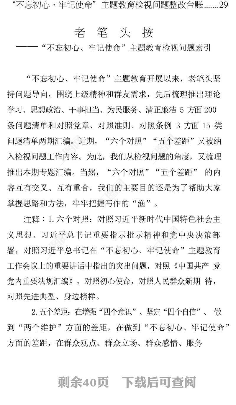 “不忘初心牢記使命”主題教育“六個對照”“五個差距”檢視問題清單及檢視問題整改臺賬匯編,不忘初心牢記使命,公文范例,領導述職報告,機關公文寫作 Array