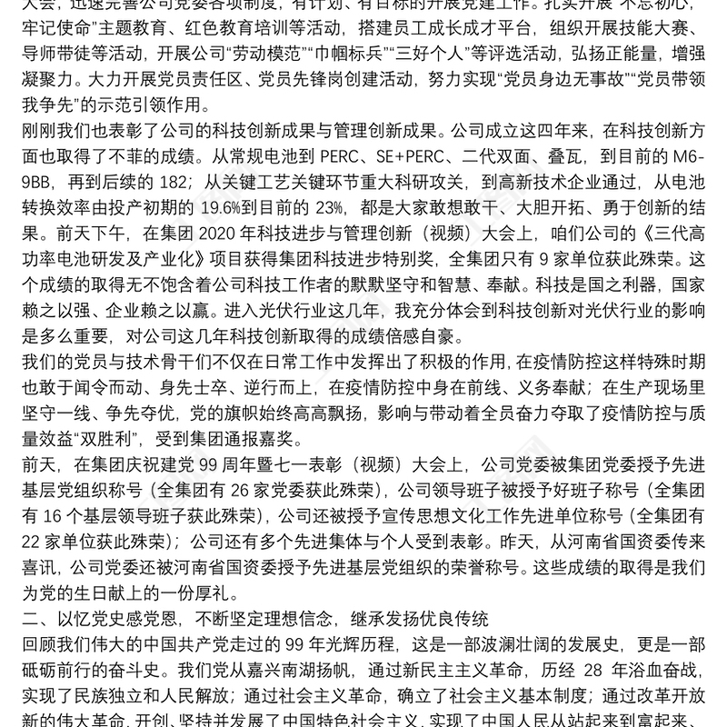 平煤隆基董事長|在平煤隆基“七一”表彰暨科技表彰大會(huì)上的講話