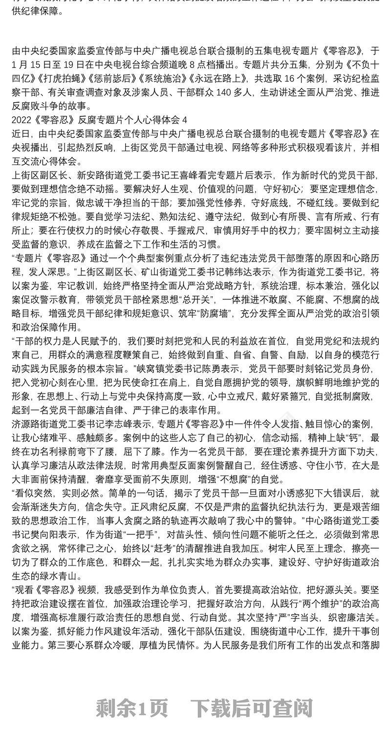 2022《零容忍》反腐專題片個人心得體會四篇 Array