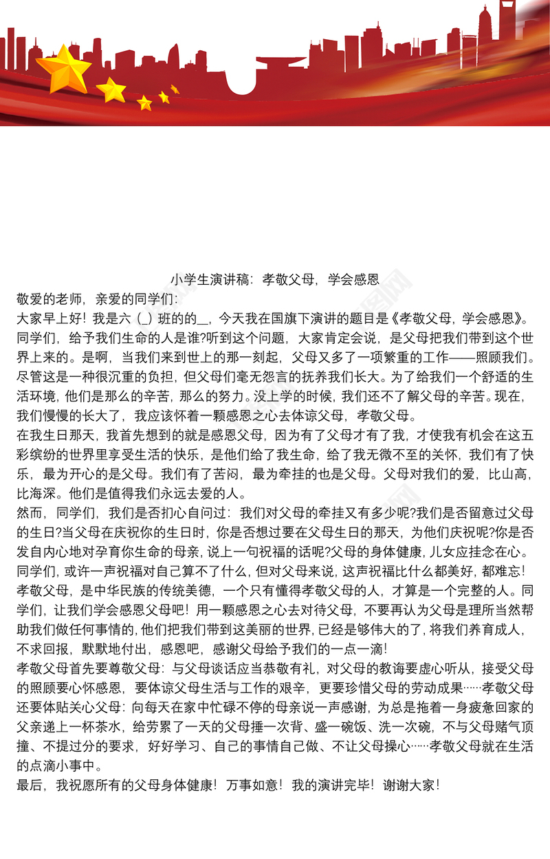 孝敬父母 孝敬父母先進事跡材料包含