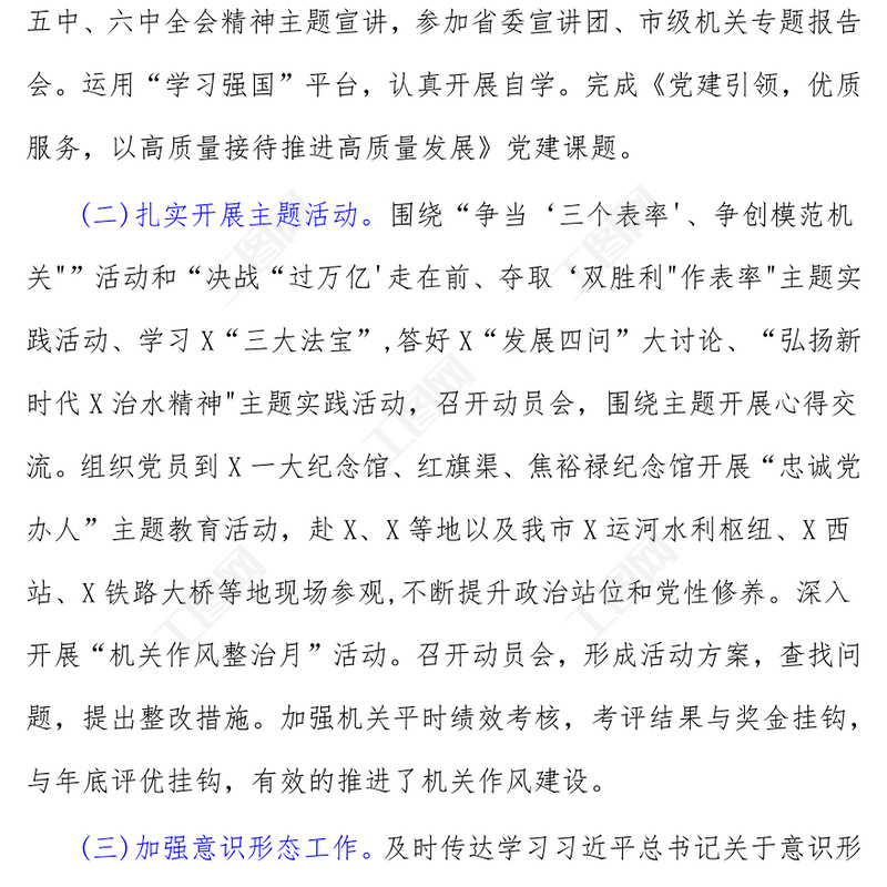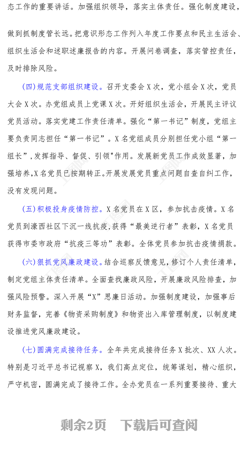 2021XXXX年度支部書記黨建工作述職評議考核工作情況報告包含
