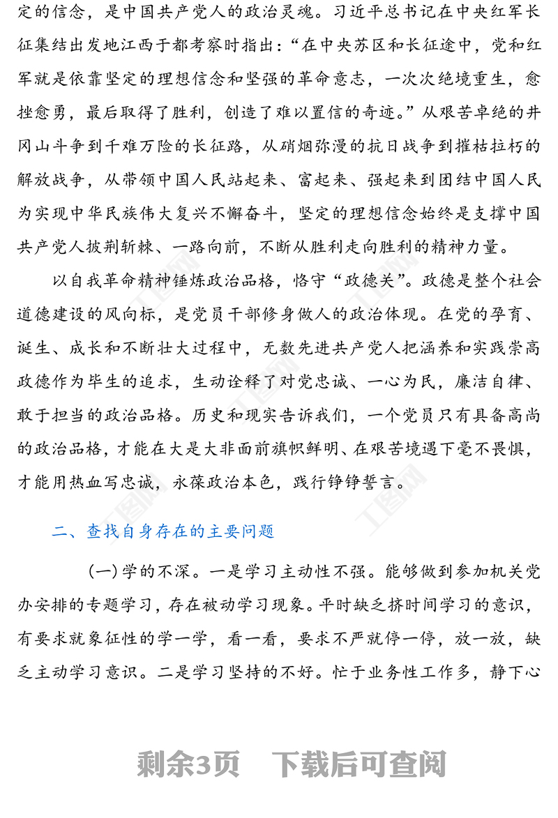 工圖網提供黨史學習教育專題組織生活會發言材料供會員免費下載。更多精彩黨課PPT素材,盡在工圖網。