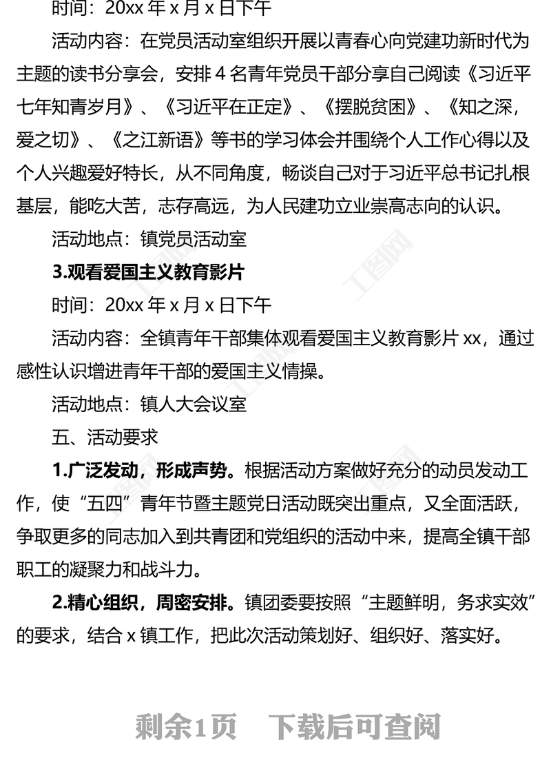 工圖網(wǎng)提供2023年五四青年節(jié)暨主題黨日活動(dòng)方案供會(huì)員免費(fèi)下載。更多精彩黨課PPT素材,盡在工圖網(wǎng)。