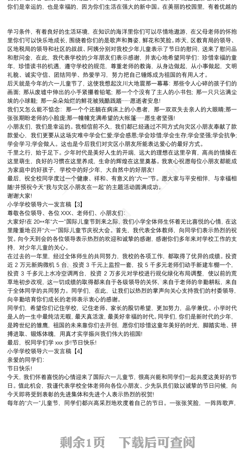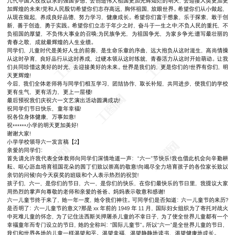 工圖網提供小學學校領導六一發言稿五篇供會員免費下載。更多精彩黨課PPT素材,盡在工圖網。